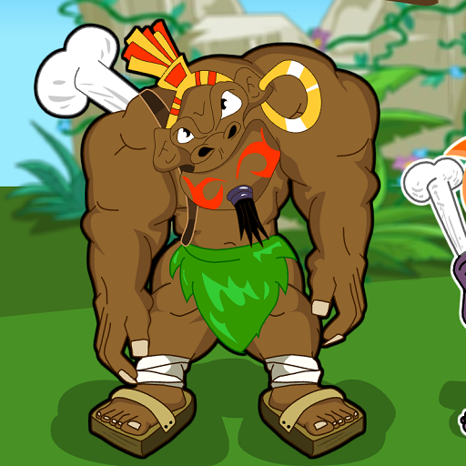 Tribal Olympics transports players back to prehistoric times with its fun, cartoon-style graphics and bright colors. The main characters are two strong tribal men standing on a large rock, ready to compete. The surrounding landscape is a wild savanna with dinosaur eggs, birds, and other primitive details. Each strike creates an impressive trajectory, making the gameplay lively and full of surprises.